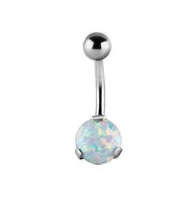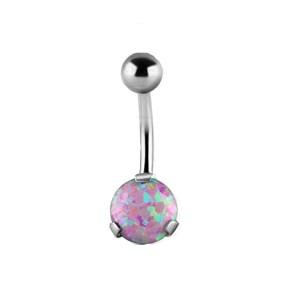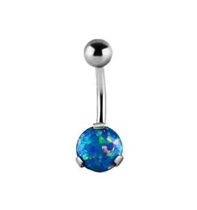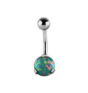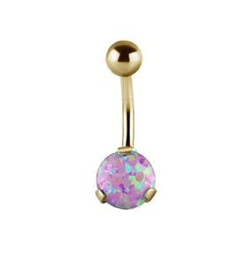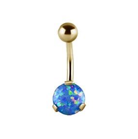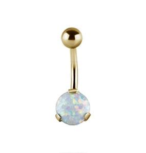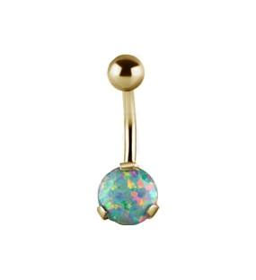 Belly Opal navelpiercing in staal of 24k goud gelaagd met lab-opaal. 10mm staaf-lengte, 1.6mm staaf-dikte. Verkrijgbaar in 5 kleuren.