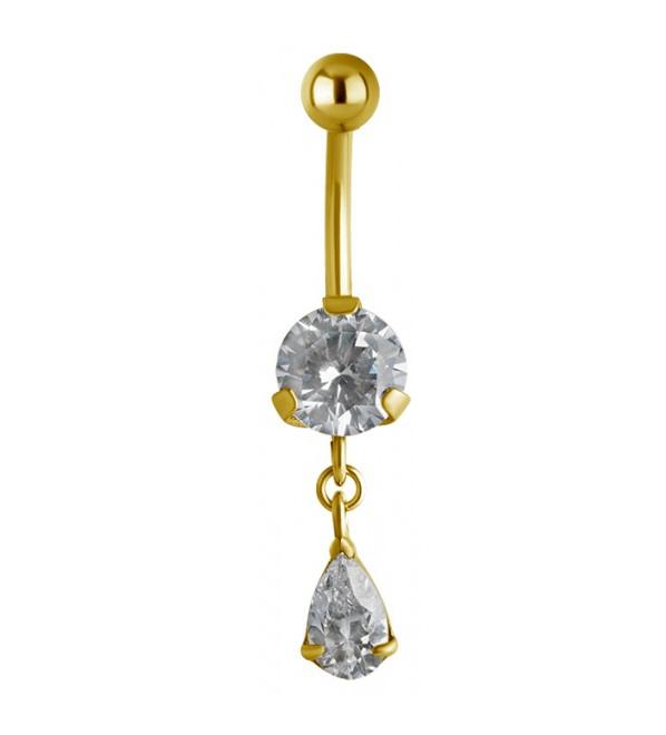 Cry Me A Crystal navelpiercing met cubic zirkonia. Staal, 24K goud of roségoud. Staaf lengtes 8–12mm, staaf dikte 1.6mm. Externally threaded.