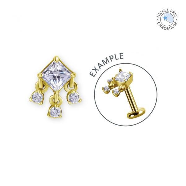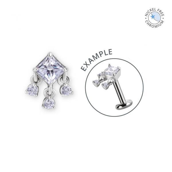 De Crystal Kite piercing is een echte blikvanger. Het ontwerp combineert een vierkante premium zirkonia met drie hangende kristallen. Samen vormen ze een speels maar luxe design. Het resultaat is een piercing die straalt vanuit elke hoek.