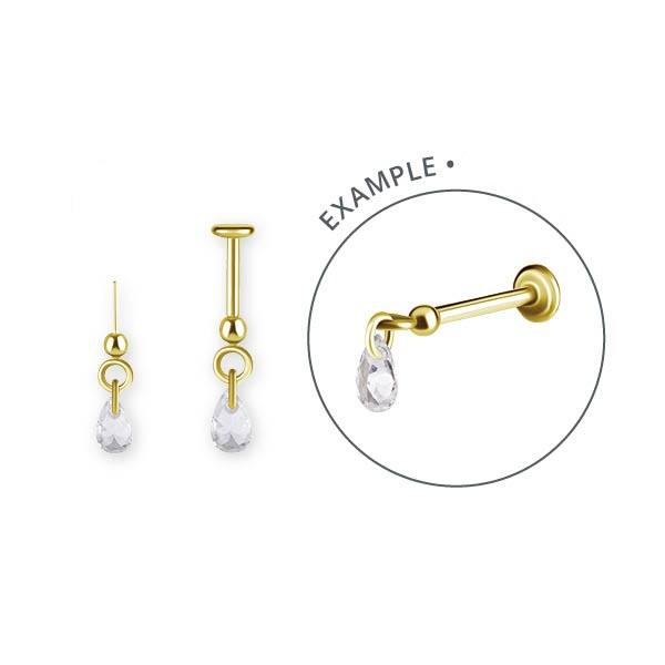 De Dauwdrup piercing is een verfijnd design met een speels accent. De kleine hanger lijkt los te zweven onder de piercing en eindigt in een druppelvormige zirkonia. Het effect is licht, elegant en toch opvallend.