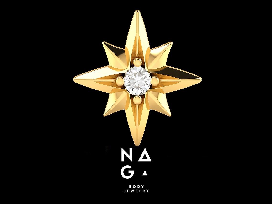 De Estralis van NAGA Body Jewelry is een moderne talisman van licht. Gemaakt van 18 karaat massief goud, straalt ze kracht en verfijning uit in één perfecte vorm. Haar ontwerp is geïnspireerd op de Noorderster – een symbool van richting, helderheid en innerlijke kompas. In het midden schittert een witte diamant, gezet met uiterste precisie, als herinnering aan je eigen centrum.