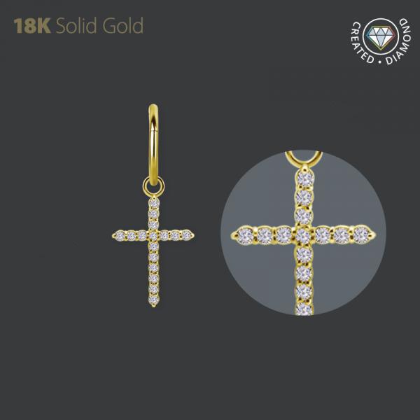 De Foi Fatale hanger van 18K massief geelgoud met lab-diamanten (met een lengte van 13mm of 16mm) past op piercingringen met 1.2mm staafdikte.