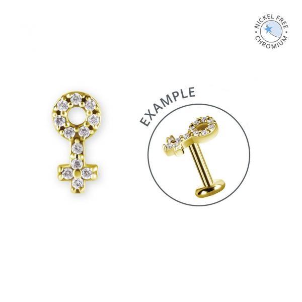 Glitter Grrrl, piercing van kobalt chroom of 18k gelaagd goud met premium zirkonia. 9mm lang, internally threaded (0.8mm), huidvriendelijk en nikkelvrij.