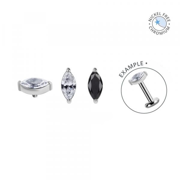 Verkrijgbaar in 3 mm, 4 mm en 5 mm past Marquess perfect bij zowel minimalistische als statement-looks. Dankzij de internally threaded 0,8 mm schroefdraad past deze top op 1,0 mm en 1,2 mm internal piercing posts. Draag Marquess in een lippiercing, nostril, (stacked) lobe, helix, conch, flat, forward helix of tragus voor een veelzijdige uitstraling die elke piercing verfraait.