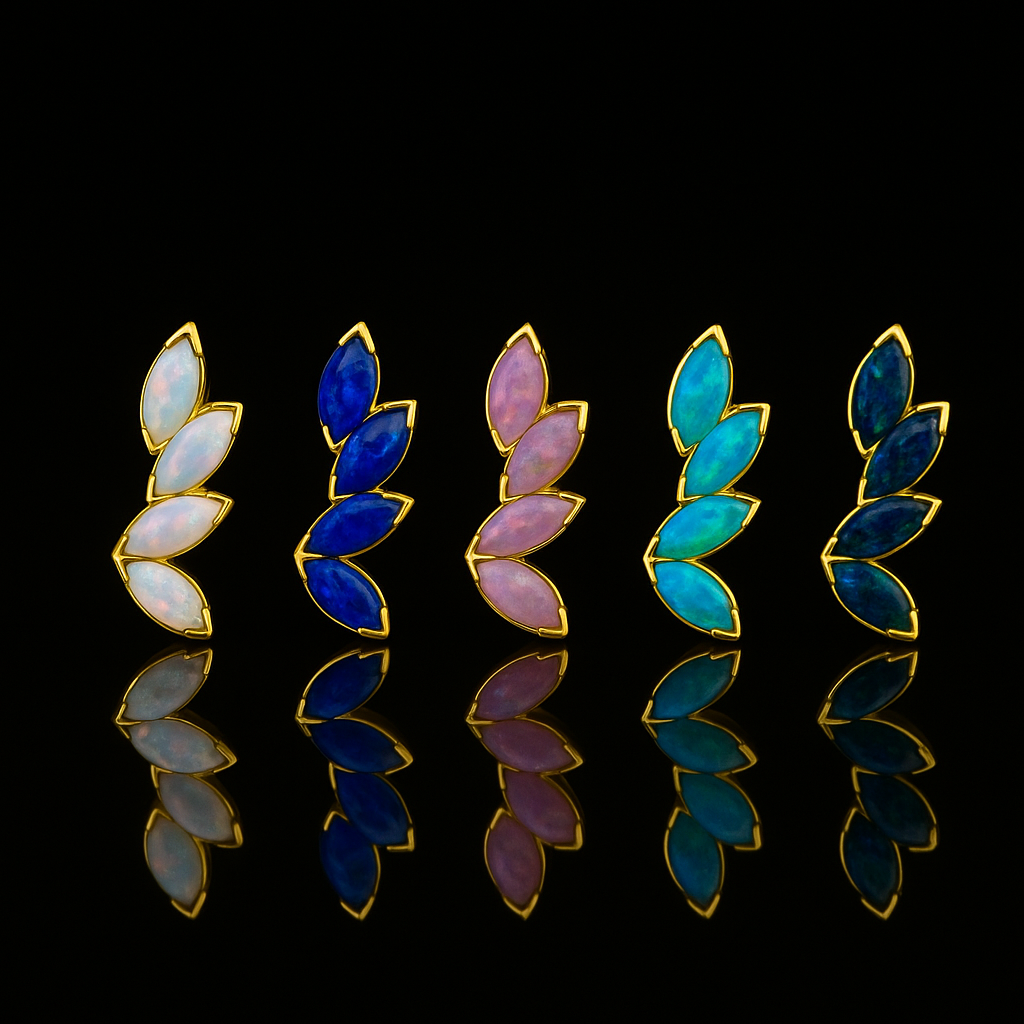 Quatre Balancement — 18k massief gouden piercing top van 12mm met vier marquise lab-opalen in vijf kleuren.
