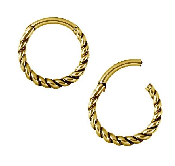 Rope Rage ring van chirurgisch staal of 24k gelaagd goud op staal, staafdikte 1.2 mm, verkrijgbaar in 6–14 mm diameter – gedraaid touw-design voor septum, conch, lobe, helix of tragus.