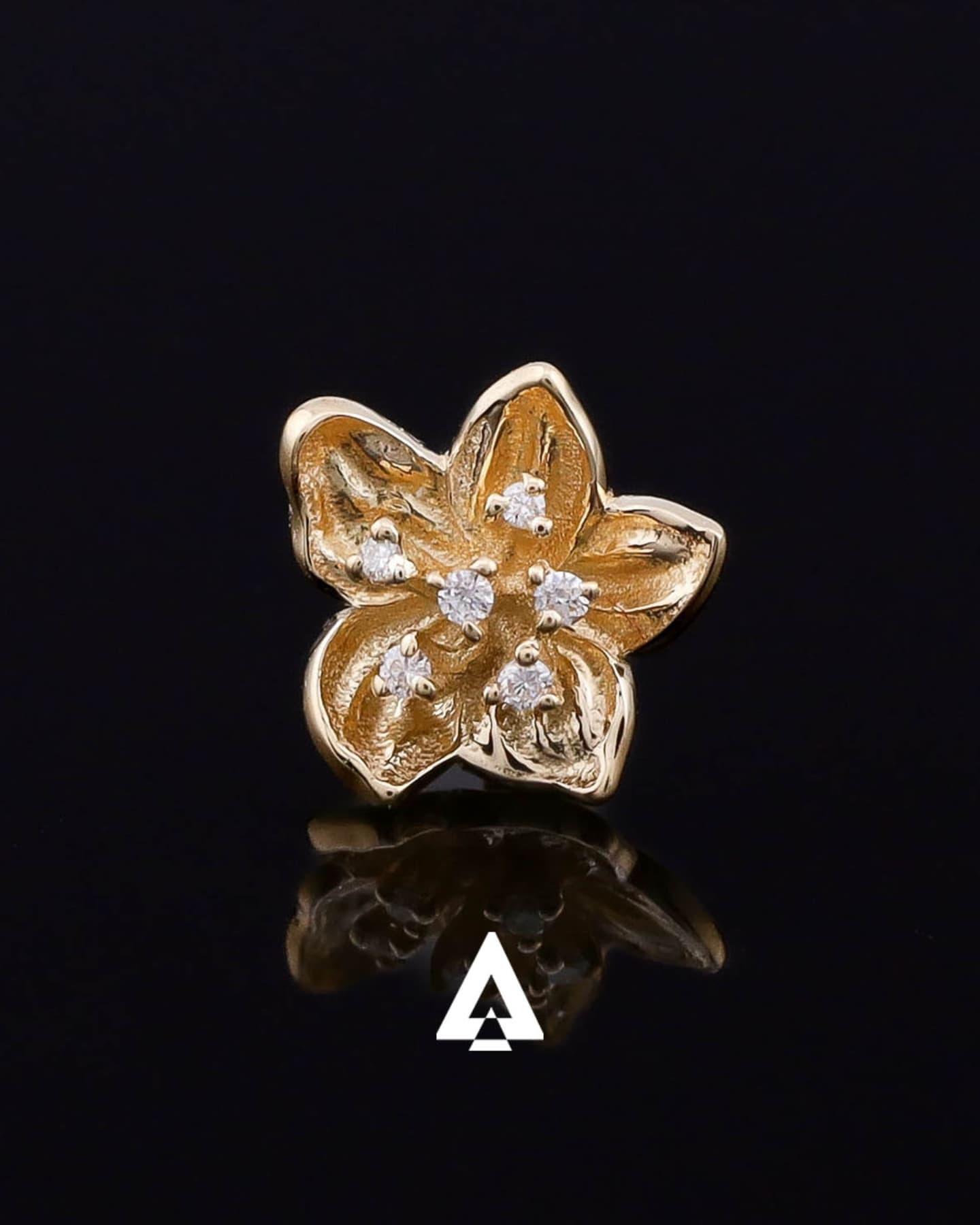 Sakura Blossom van NAGA – 18k massief gouden piercing top met witte diamanten, 7.5mm lang, threadless sluiting.