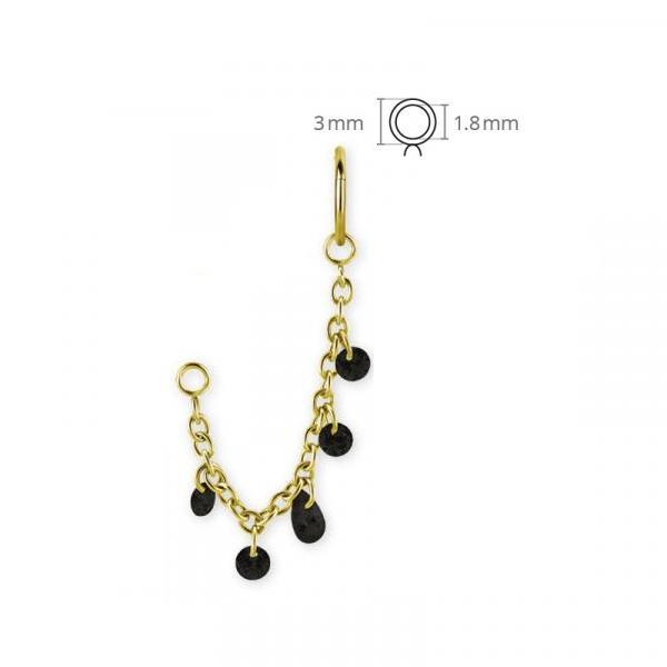 Stagger draait om ritme, beweging en contrast. Deze piercing-hanger ketting is gemaakt van chirurgisch staal of van chirurgisch staal met 24k gelaagd goud. Het ontwerp is 40 mm lang en opgebouwd uit een fijne ketting met vier ronde zwarte zirkonia steentjes en één druppelvormige zwarte zirkonia. De donkere accenten zorgen voor diepte en geven Stagger een rauwe, bijna grafische uitstraling.