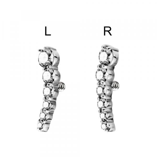 Sweep is een piercing top met een vloeiende, richtinggevende vorm. Het ontwerp volgt een zachte curve die bewust naar links of rechts loopt. Daardoor sluit Sweep mooi aan op de natuurlijke lijn van het oor. De vorm oogt elegant, maar blijft strak en gecontroleerd. De rij steentjes versterkt de lengte van het ontwerp en zorgt voor een verfijnd accent. Sweep werkt subtiel als solo piece, maar komt extra sterk naar voren in een doordachte ear styling. Het is een sieraad dat beweging suggereert, zonder onrust toe te voegen.
