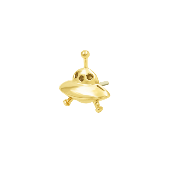UFO piercing top van 14k goud. Sci-fi vibes in geel-, wit- of roségoud. Perfect voor je lobe, helix, flat of conch.