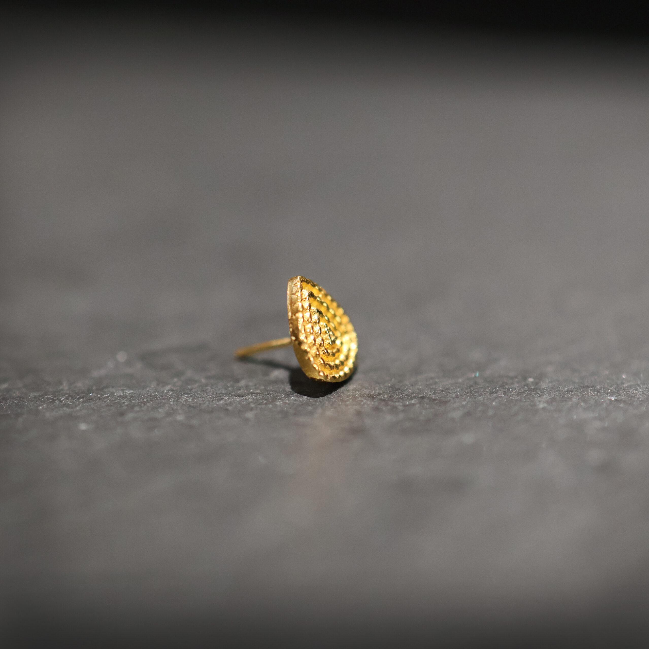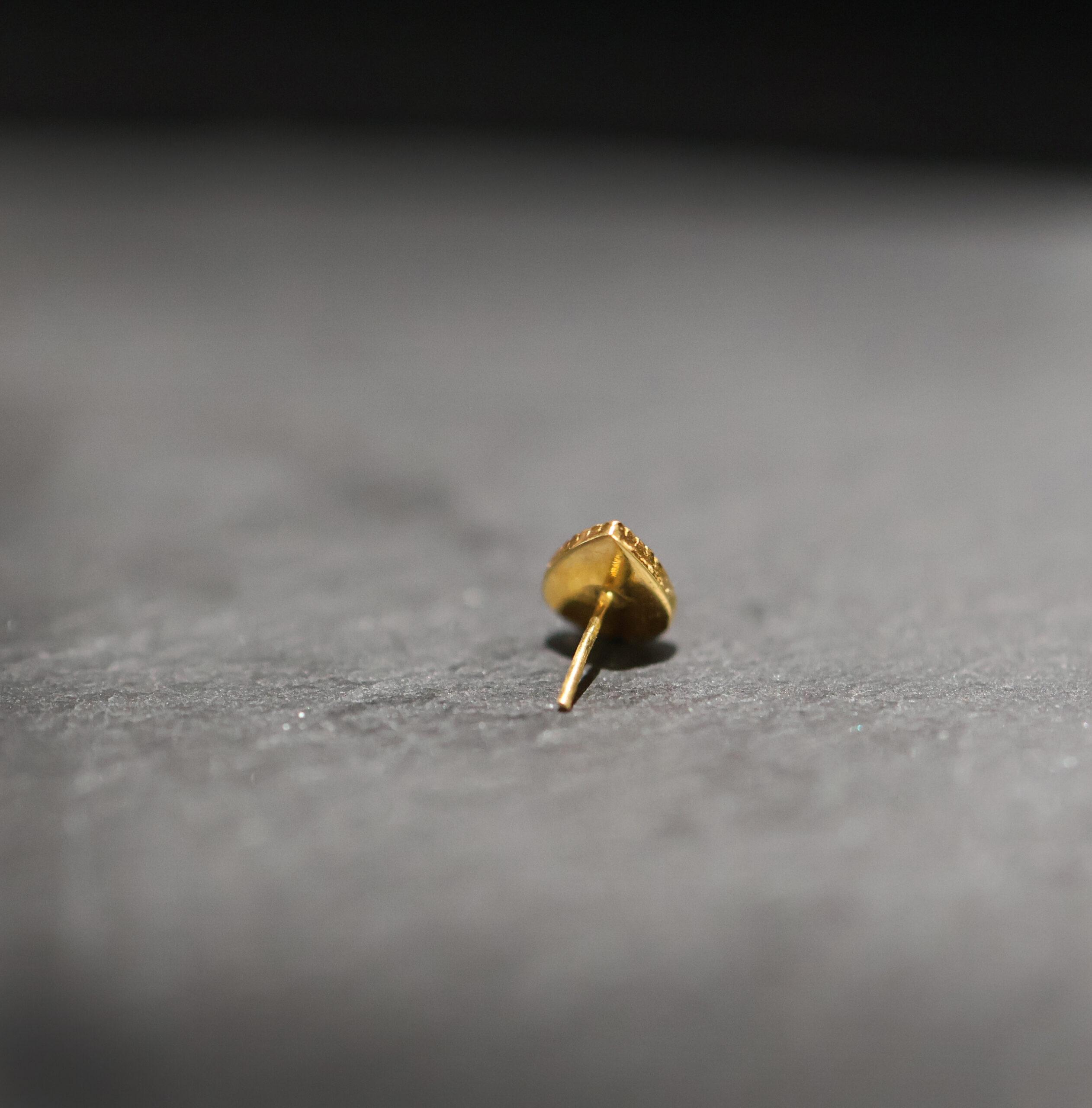 Met een afmeting van 5mm breed en 6.5mm lang past Véda perfect in een medusa, conch, lobe, helix, flat of tragus. De threadless sluiting maakt het wisselen eenvoudig en stevig tegelijk. Volledig vervaardigd uit massief goud – geen laagje, geen compromis, maar puur vakmanschap.
