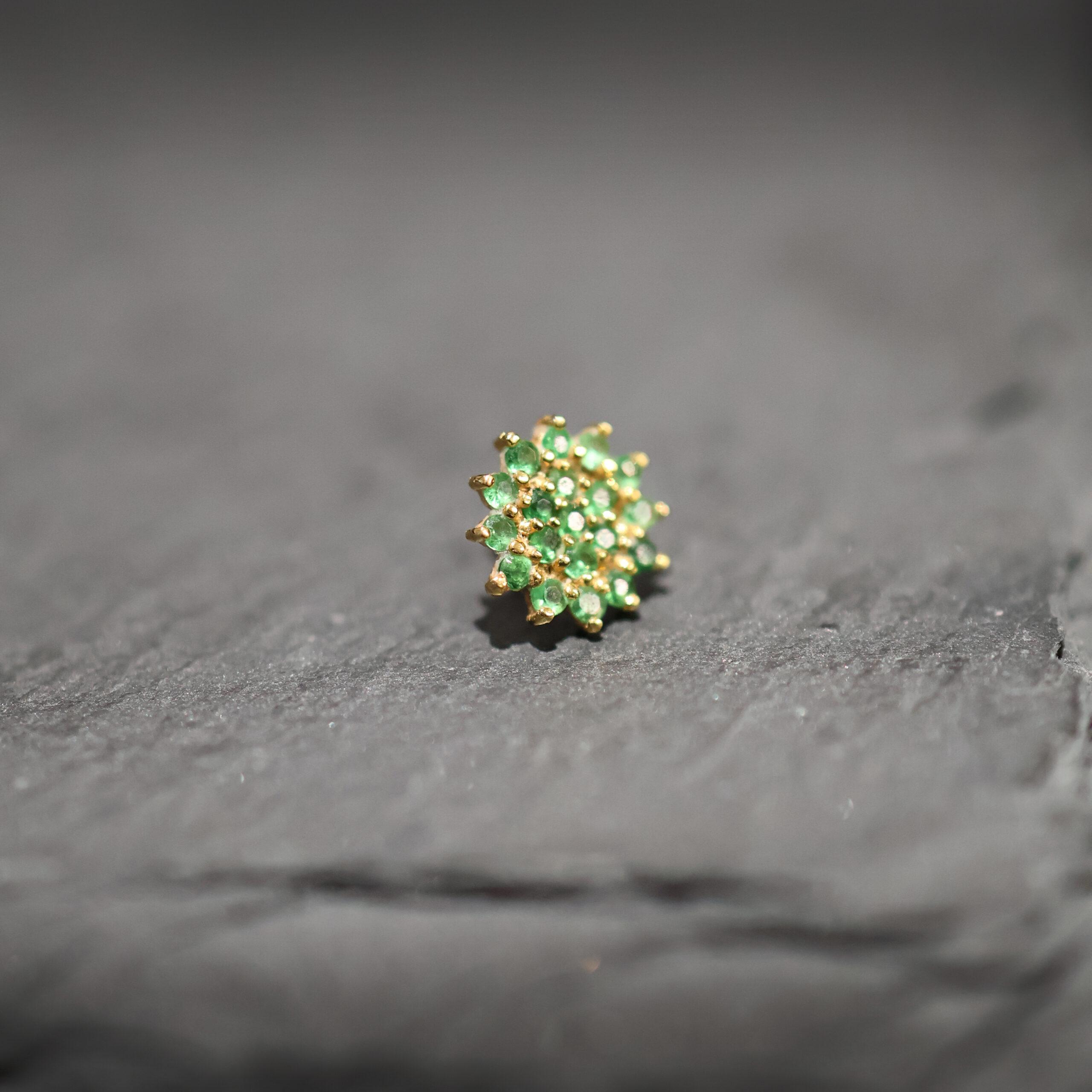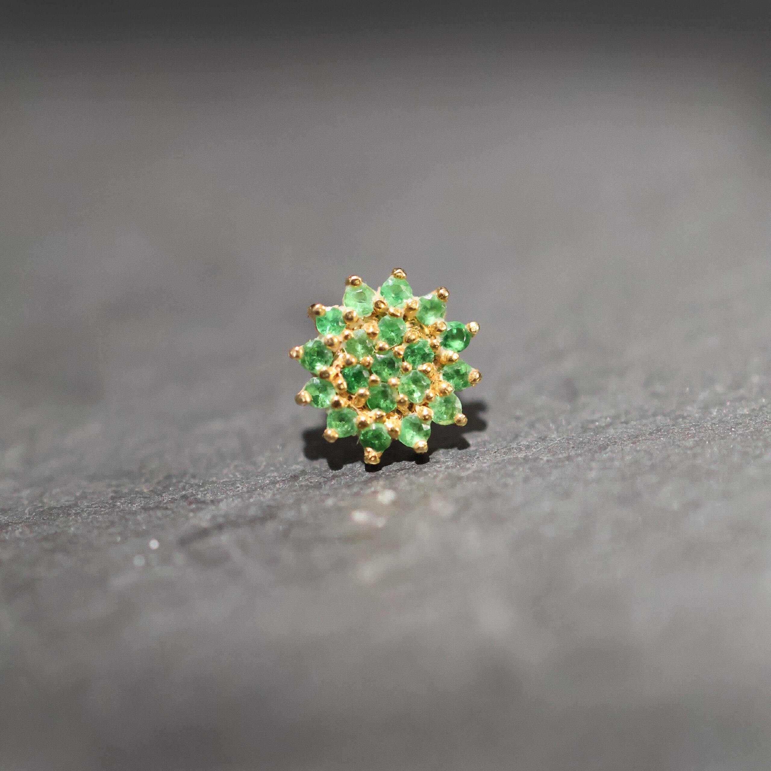 Zorana is het samenspel van goud, licht en levenskracht. Dit threadless topje van 14 karaat massief geelgoud is ontworpen met aandacht voor vorm, precisie en symboliek. De zonachtige structuur trekt het oog direct naar het centrum, waar een fonkelende echte tsavoriet ligt. Deze zeldzame edelsteen heeft een diepe groene gloed die symbool staat voor groei, balans en vernieuwing – energie die letterlijk uit het hart van de aarde komt.